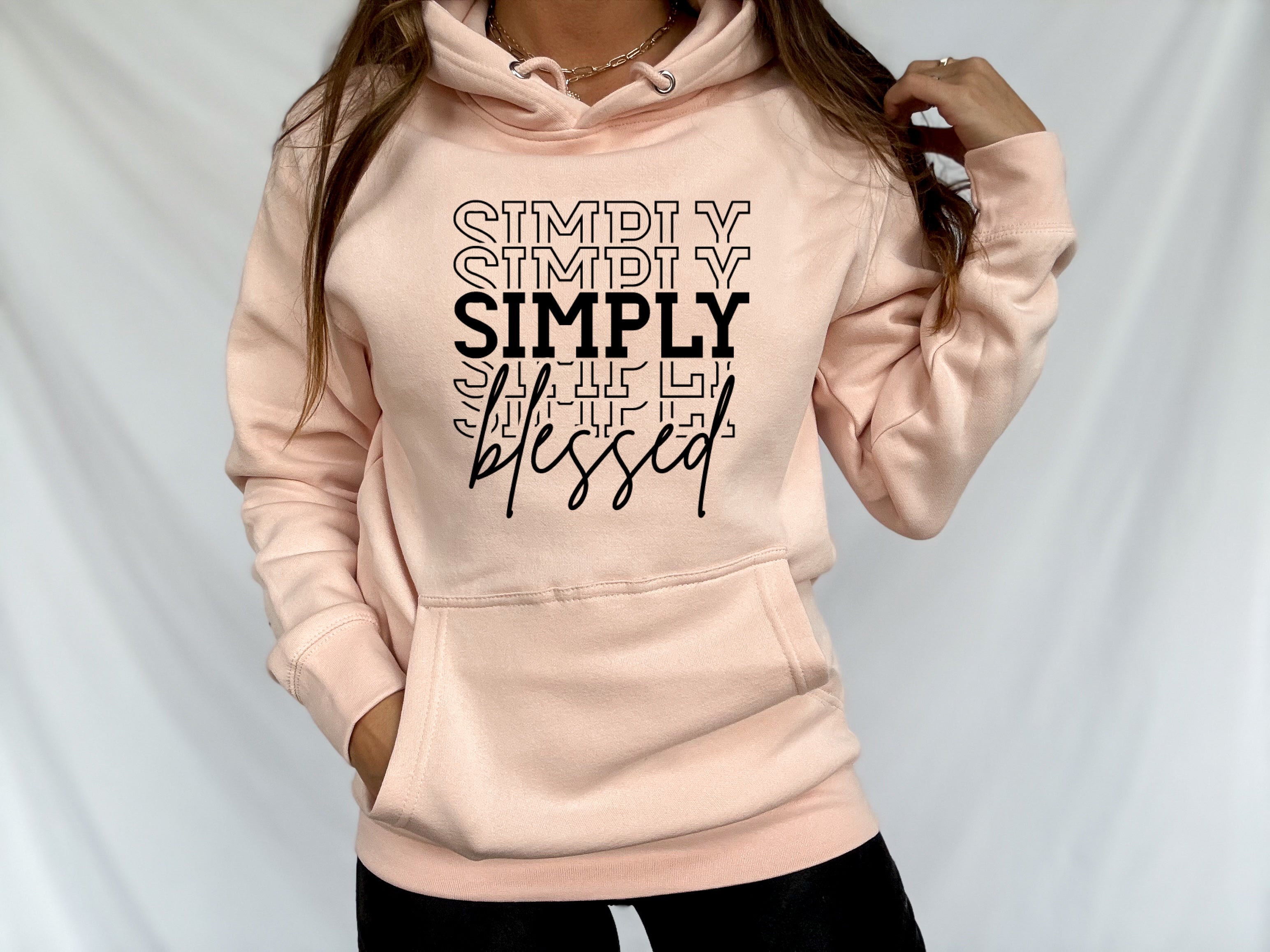 Simply Blessed Hoodie | Medium to Light Weight Hoodie | Unisex Fit Hoodie |Blush Pink Hoodie - MEDIUM