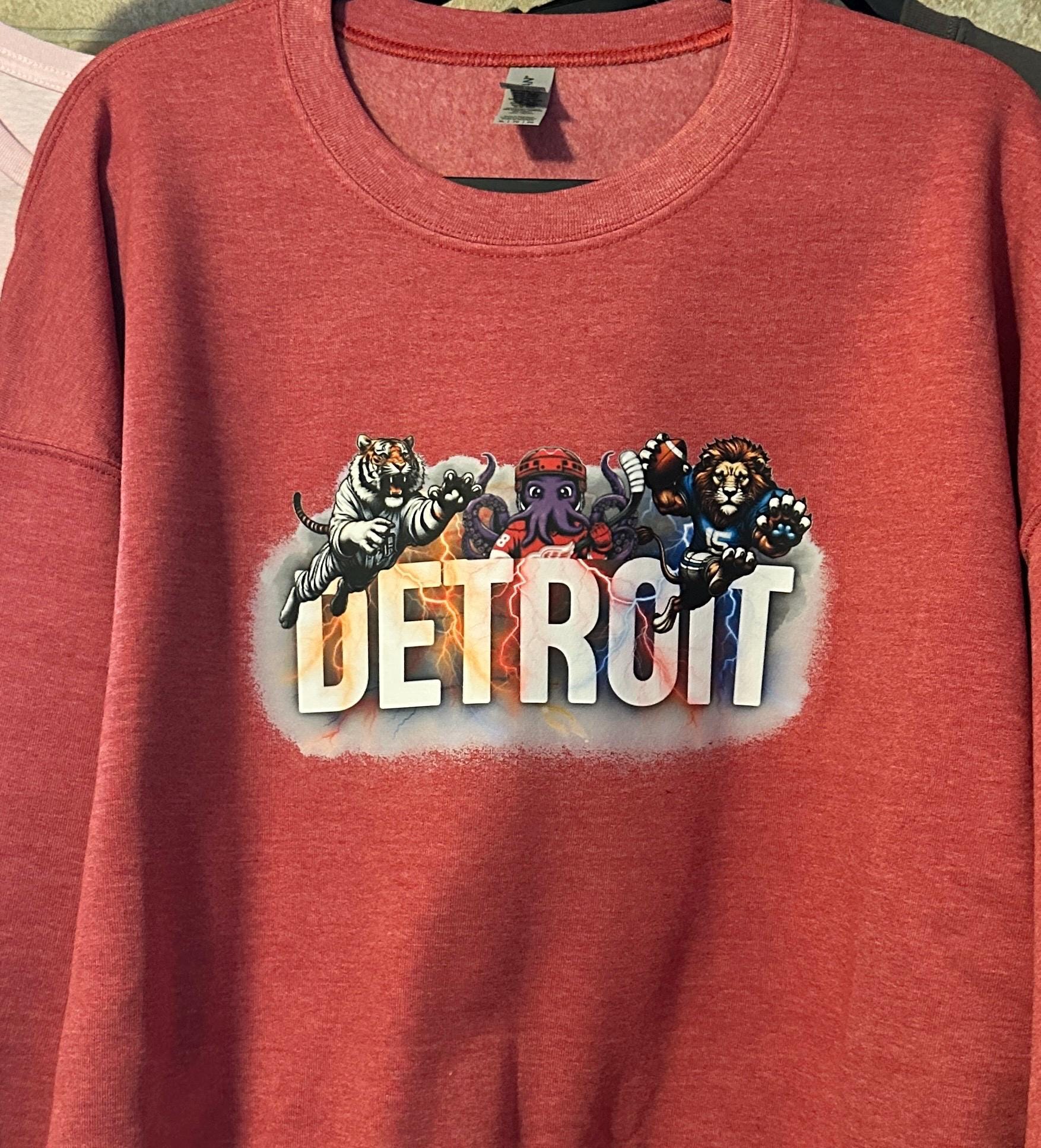 Detroit Fans Lions Tigers Pistons Red Wings Crew Neck Sweatshirt Mens or women’s unisex fit - S